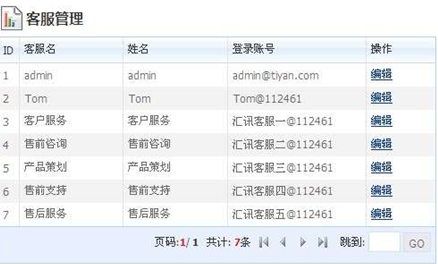 在系统配置管理菜单中,点击“客服管理”进入客服人员管理界面,对客服人员的客服名进一步编辑。